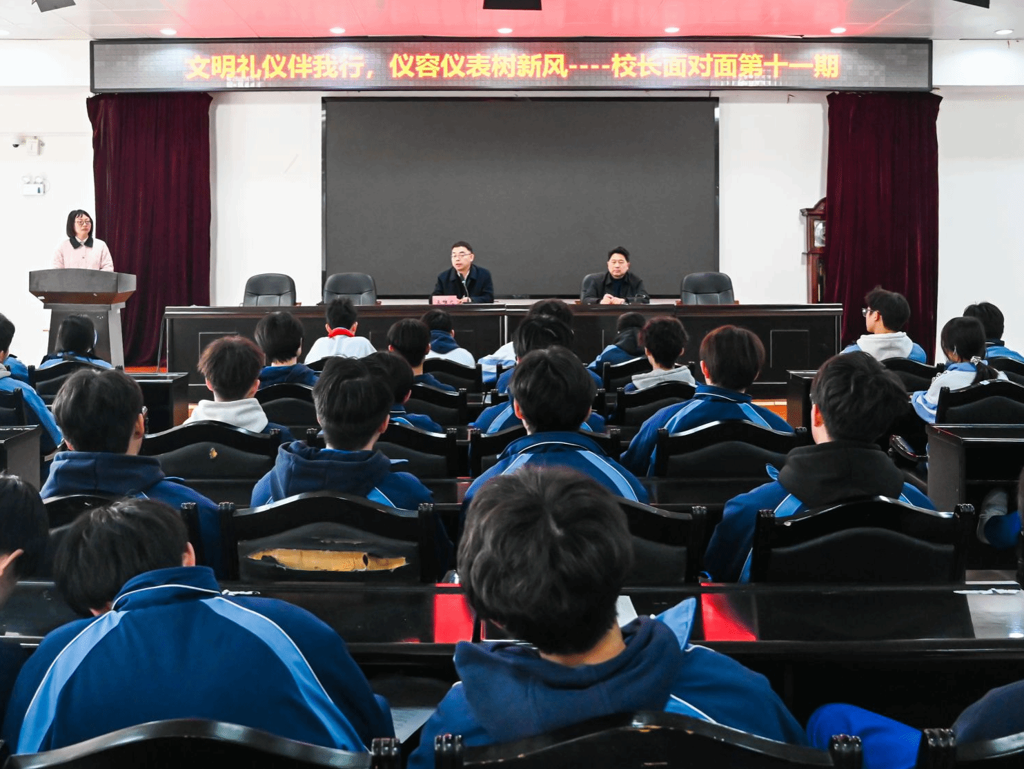 副校长周晖通过生动故事与实例,深入解读仪容仪表规范的意义,并进一步明确了发型、首饰、校服等各项标准。整场对话在平等、融洽的氛围中进行,充分体现了学校“以生为本”的育人理念。