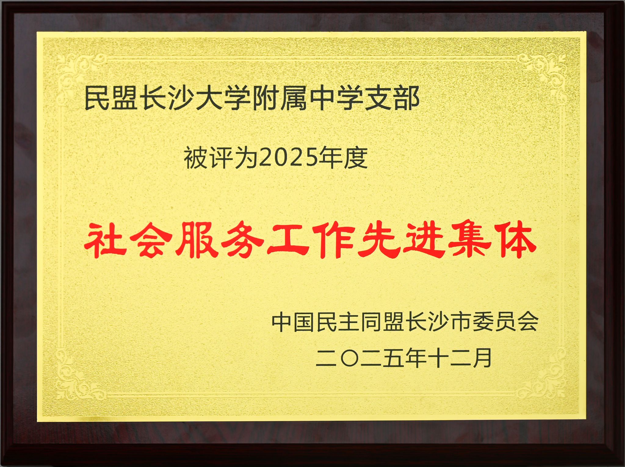 近日,从中国民主同盟长沙市委员会传来喜讯,长沙大学附属中学统战工作再结硕果。民盟长沙大学附属中学支部凭借出色的履职能力和突出的社会服务成效,荣获民盟市委会授予的“2025年度先进支部”及“2025年度社会服务工作先进集体”两项荣誉称号。同时,我校曹晓华同志也获评“2025年度优秀盟员”,充分展示了长附人奋发有为的精神风貌与责任担当。
