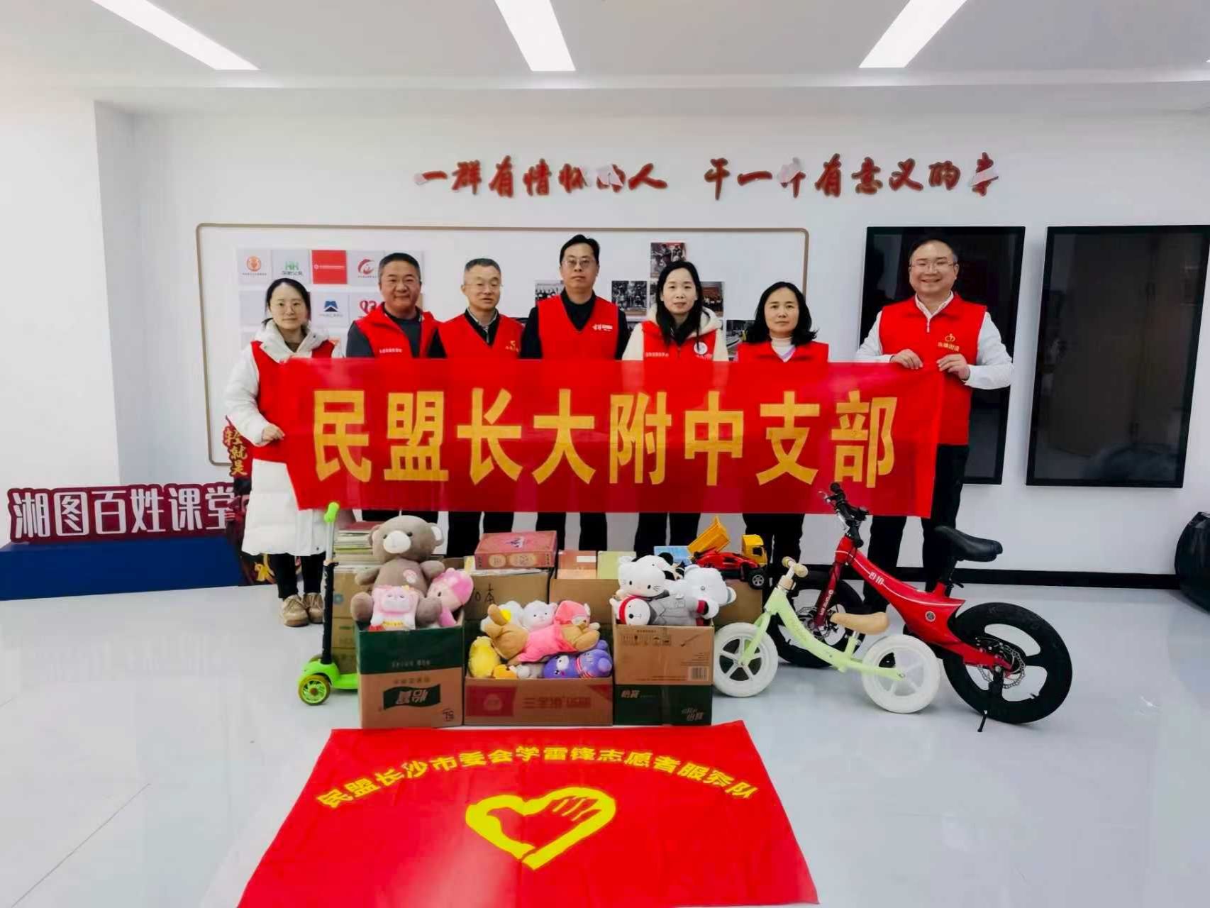 3月5日,支部盟员代表参加民盟长沙市委会机关在雨花区东塘街道七里庙社区“温暖里”治理服务中心开展的学雷锋“同心护苗”公益捐赠活动。