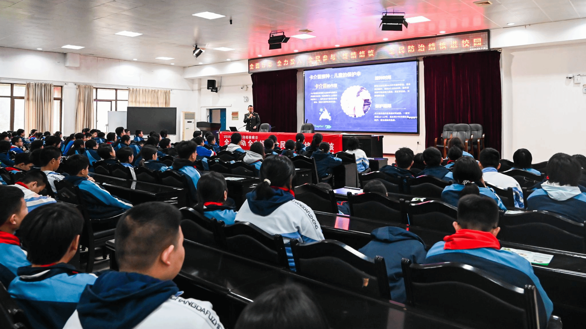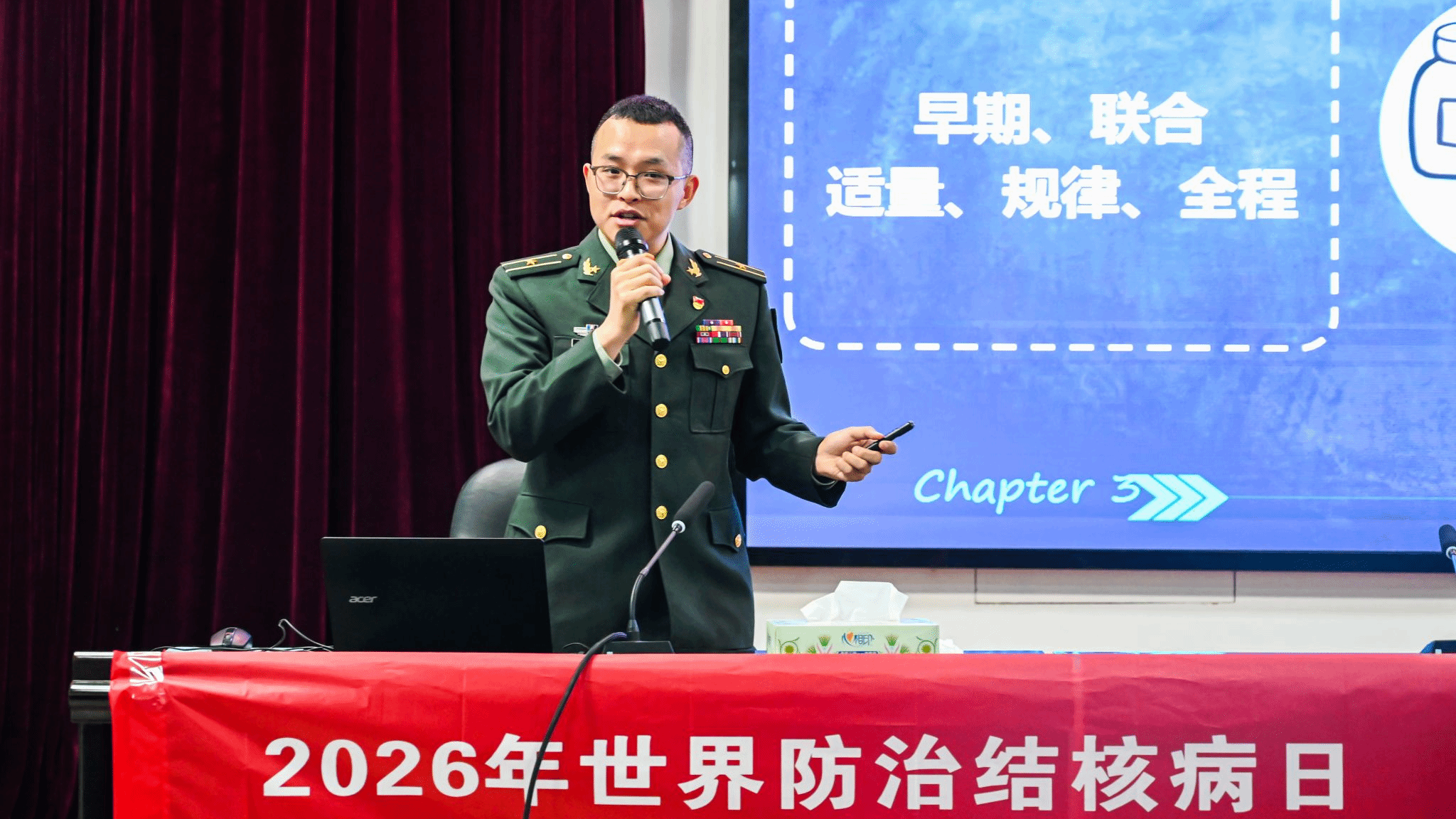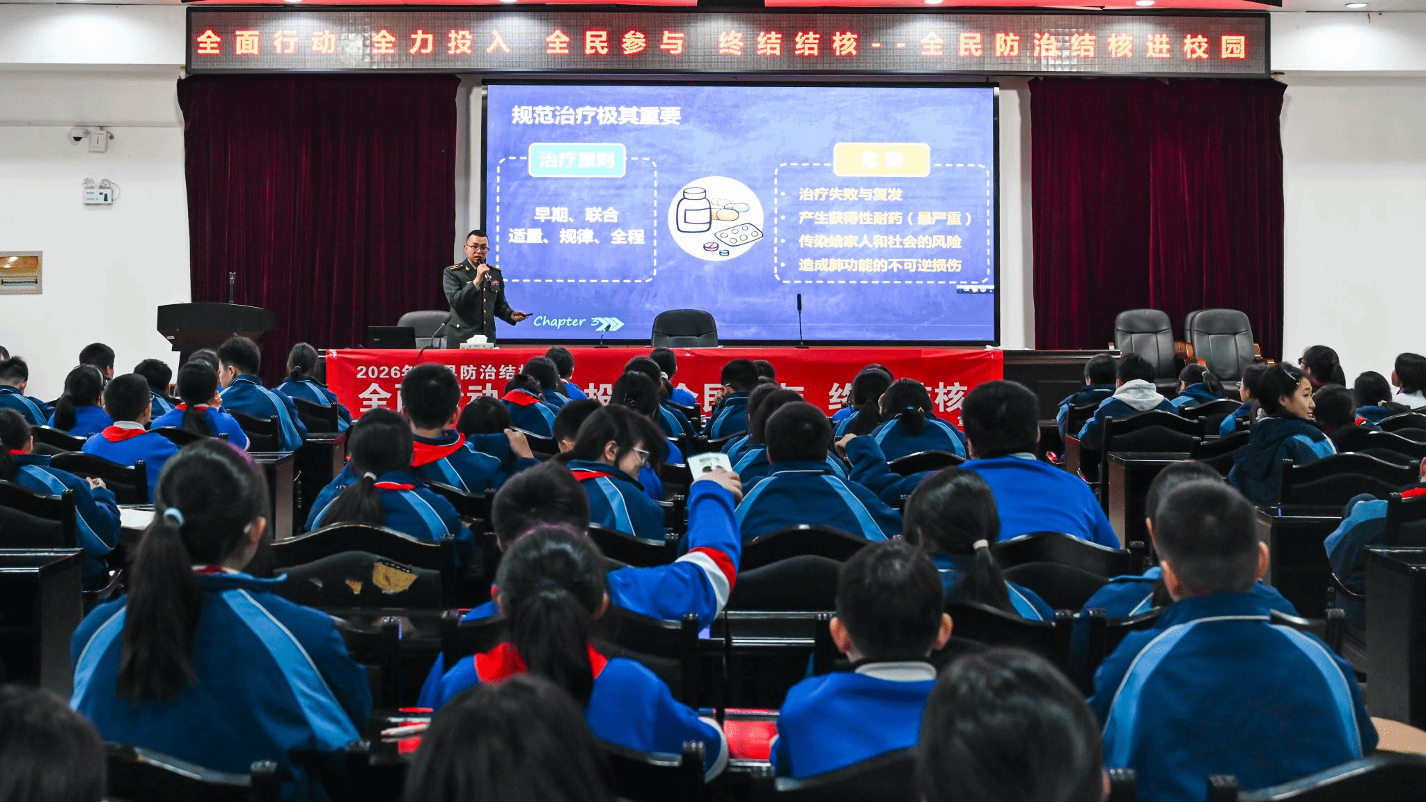 为普及结核病防治知识,增强师生健康意识,3月23日,我校特邀联勤保障部队第921医院呼吸内科主治医师徐磊,举办了一场主题为“全面行动 终结结核”的结核病防治科普讲座。