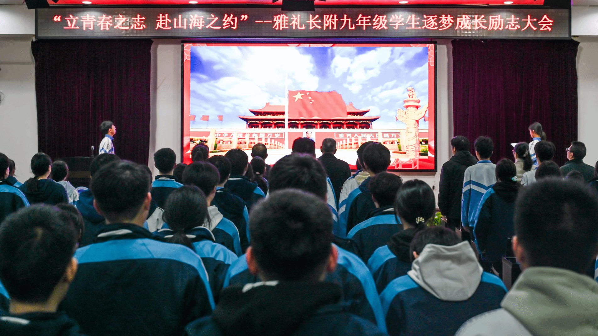 为激励九年级学子坚定理想、砥砺意志,以昂扬姿态迎接学业挑战,3月30日,我校在大会议室举行“立青春之志,赴山海之约”——九年级学生筑梦成长励志大会。学校领导、全体初三教师、学生及各班家长代表共同出席,见证了一场关于成长、梦想与担当的青春仪式。