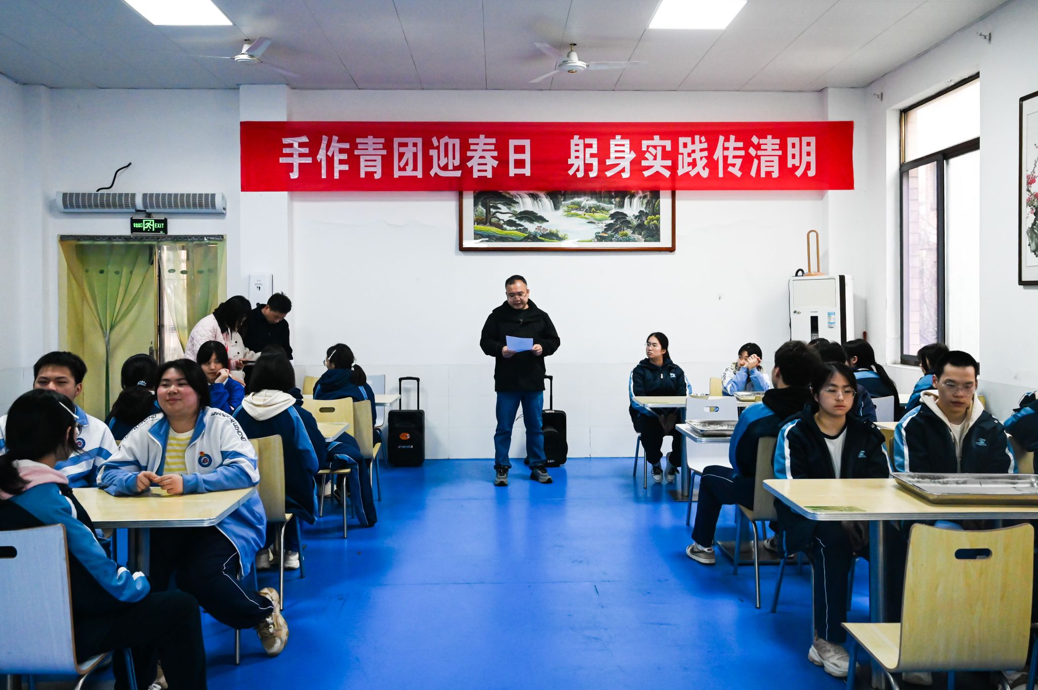 活动伊始,张翼老师进行民俗知识宣讲,围绕清明节核心习俗及青团的民俗寓意、食材特点展开讲解,帮助同学们加深对传统节日的认识与理解。